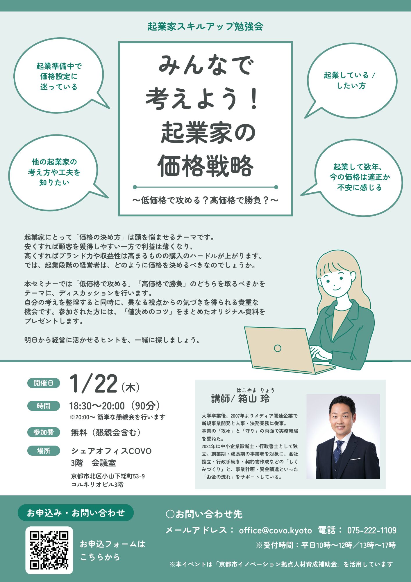 2026年1月開催イベント「みんなで考えよう! 起業家の価格戦略 ~低価格で攻める?高価格で勝負?~」