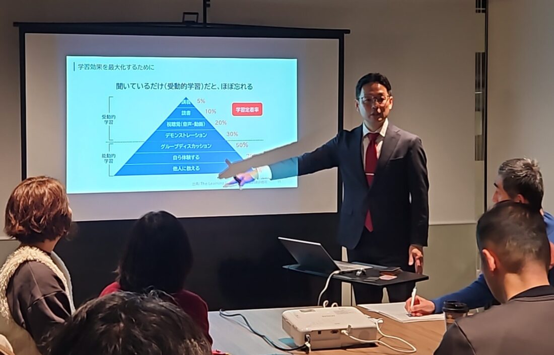 ラーニングピラミッドを元に、参加者の皆様にはただ聞くだけでなく、